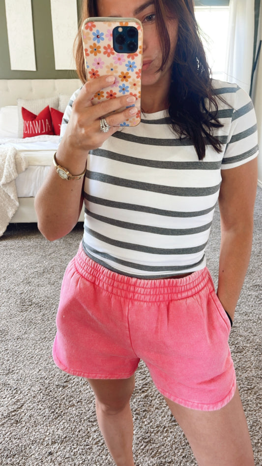 DRAWSTRING PINSTRIPE WIDE LEG LINEN PANTS