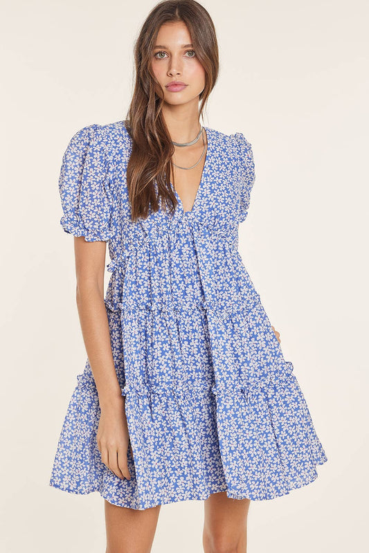 FLORAL PUFF SLEEVED BABYDOLL MINI DRESS